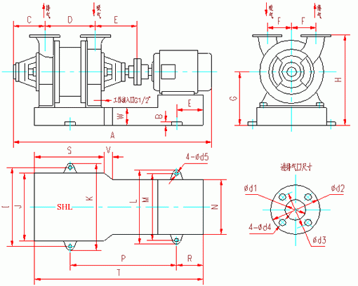 SK-0.4、SK-0.8水(shui)環式真空泵(beng)及壓縮機外(wai)形及安裝尺(chǐ)寸圖