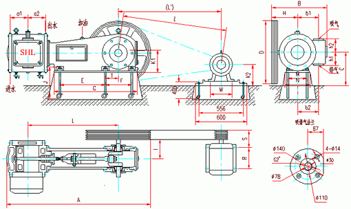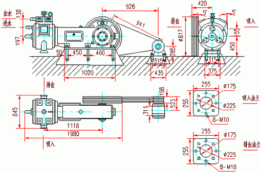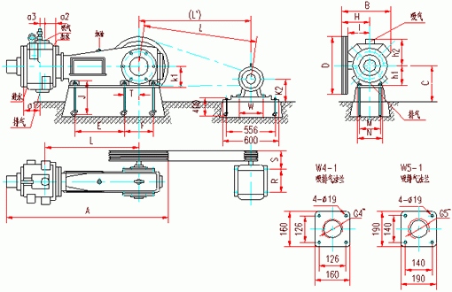 W4-1、W5-1往複式真空(kōng)泵安裝尺寸圖: